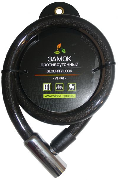 Противоугонный тросовый замок со стальной головкой в индивидульной упаковке Vinca sport.