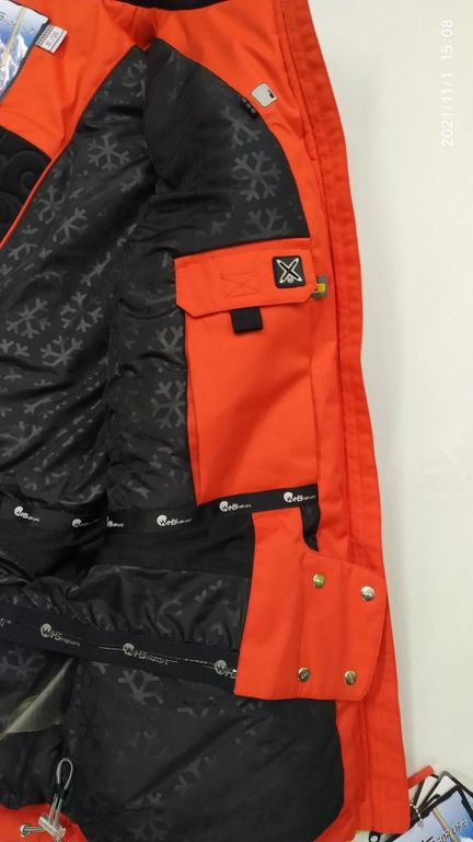 Ветрозащитная планка на кнопках защищает от попадания холодного воздуха. Снегозащитная юбка также защищает от попадания вовнутрь снега. Проклеены швы.