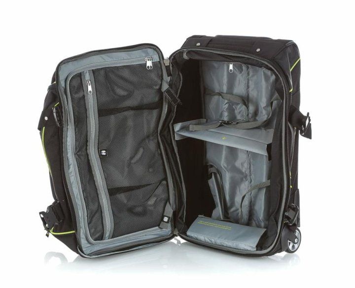 Прочная и вместительная сумка на колесах. Большой объем 93 литров и всевозможные карманы и отделения позволяют удобно разместить большое количество вещей и снаряжения.