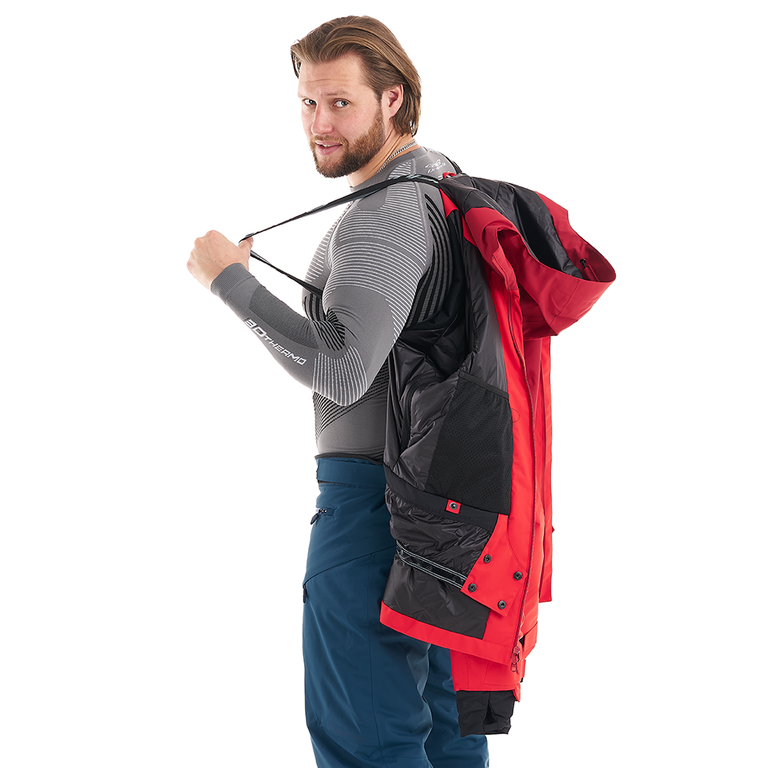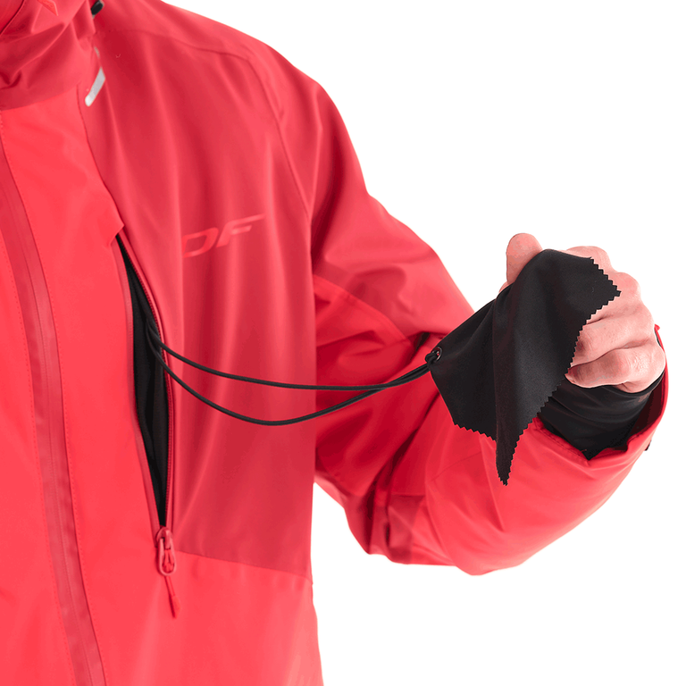 100% защита от мокрого снега и ветра: все швы проклеены, влагозащитные молнии, снегозащитная юбка с силиконовым покрытием. Продуманный функционал и система вентиляции позволят чувствовать себя уютно как при подъеме, так и активном спуске. При необходимости капюшон с двойной регулировкой можно надеть поверх шлема. Есть отдельный карман для Ski Pass на рукаве, салфетка для протирания маски, манжеты на рукавах, светоотражающие элементы.