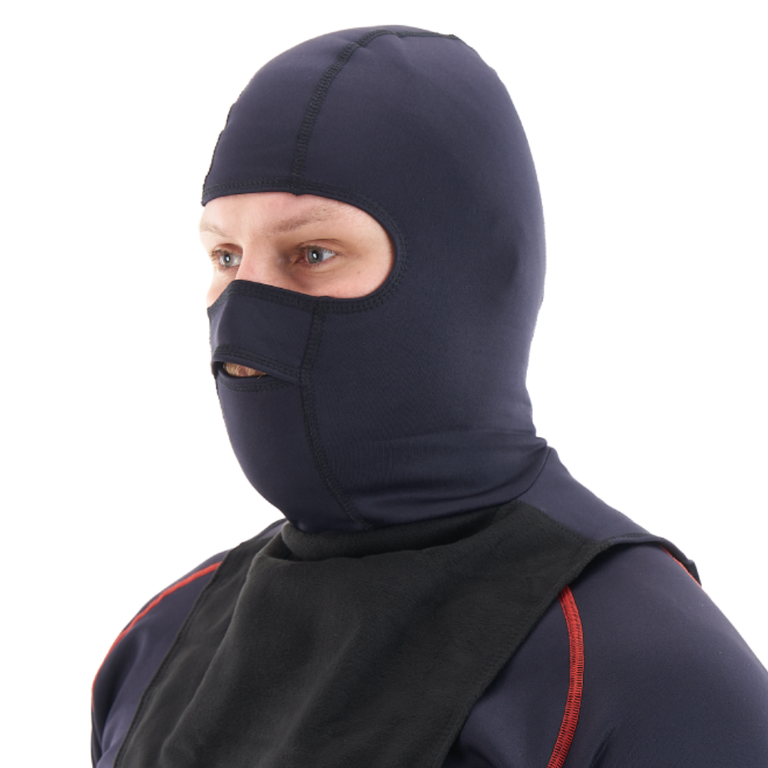 Зимний подшлемник с ветрозащитным нагрудником для активного зимнего времяпровождения. Верхняя часть подшлемника анатомической формы с плоскими комфортными швами выполнена из легкого эластичного трикотажа с отличными терморегуляционными и влагоотводящими свойствами. У подшлемника есть система отвода конденсата: на лицевой части нашита планка на нос. Дыхание через нос направляется вниз – удобная опция, благодаря которой маска не запотевает. Удлиненный нагрудник из виндблока с мембраной надежно защищает грудь от продувания.
